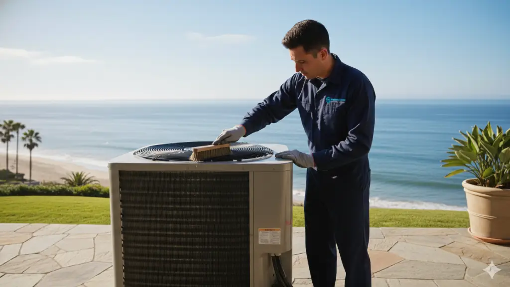 Nos ambientes de praia, o salitre é um dos maiores inimigos dos sistemas de climatização. A maresia contém cloretos que aceleram a oxidação das serpentinas, conectores e carcaças metálicas dos equipamentos. Sem manutenção periódica, esse processo causa corrosão prematura, perda de rendimento térmico e aumento no consumo de energia.